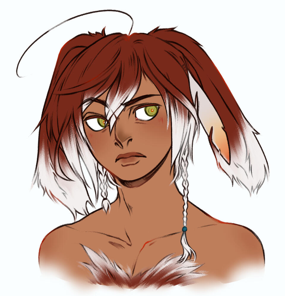 . cis male (he/they) . biromantic asexual .A Thavnairian-born Viera, Kiran cannot remember the mother and father who loved him, as he was quite young when he was separated from his family and sold-- a punishment upon his parents for tangling with the wrong end of the Hannish underworld. The boy grew up a slave to a noble in Radz-at-Han, working a debt that could never be paid back... until his recent timely escape on a ship bound for Eorzea.Kiran is rough around the edges and very distrustful, but underneath the constant scowling is a sarcastic and expressive personality. Despite surviving by violence and cunning, Kiran ultimately can't help but protect the less fortunate. He has a penchant for disobeying authority and jumping into trouble without a second thought, which is basically how the boy ended up as a runaway. One will find that he attracts interestingly suspicious company.Kiran is no stranger to the Hannish streets, getting by with his talent for pickpocketing, his charmingly boyish looks, and fixing all manner of mechanical weapons. Any job worth the gil is always guaranteed to be done swiftly and silently. However, expect him to be almost permanently tipsy and reeking of smoke when hired. Strangely, the Viera is supernaturally good at tracking people as well...